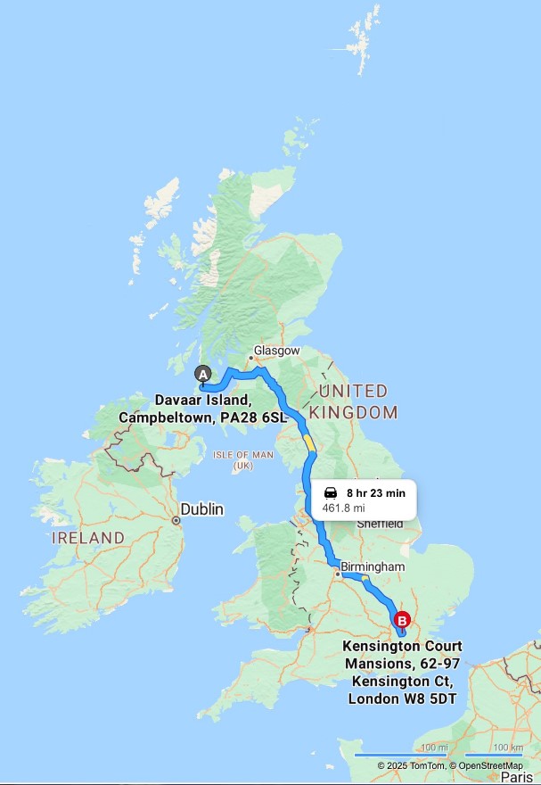 The majority of those funds (several times the original £50,000 London house deposit) came back “up north” ~ 461 miles to be precise…